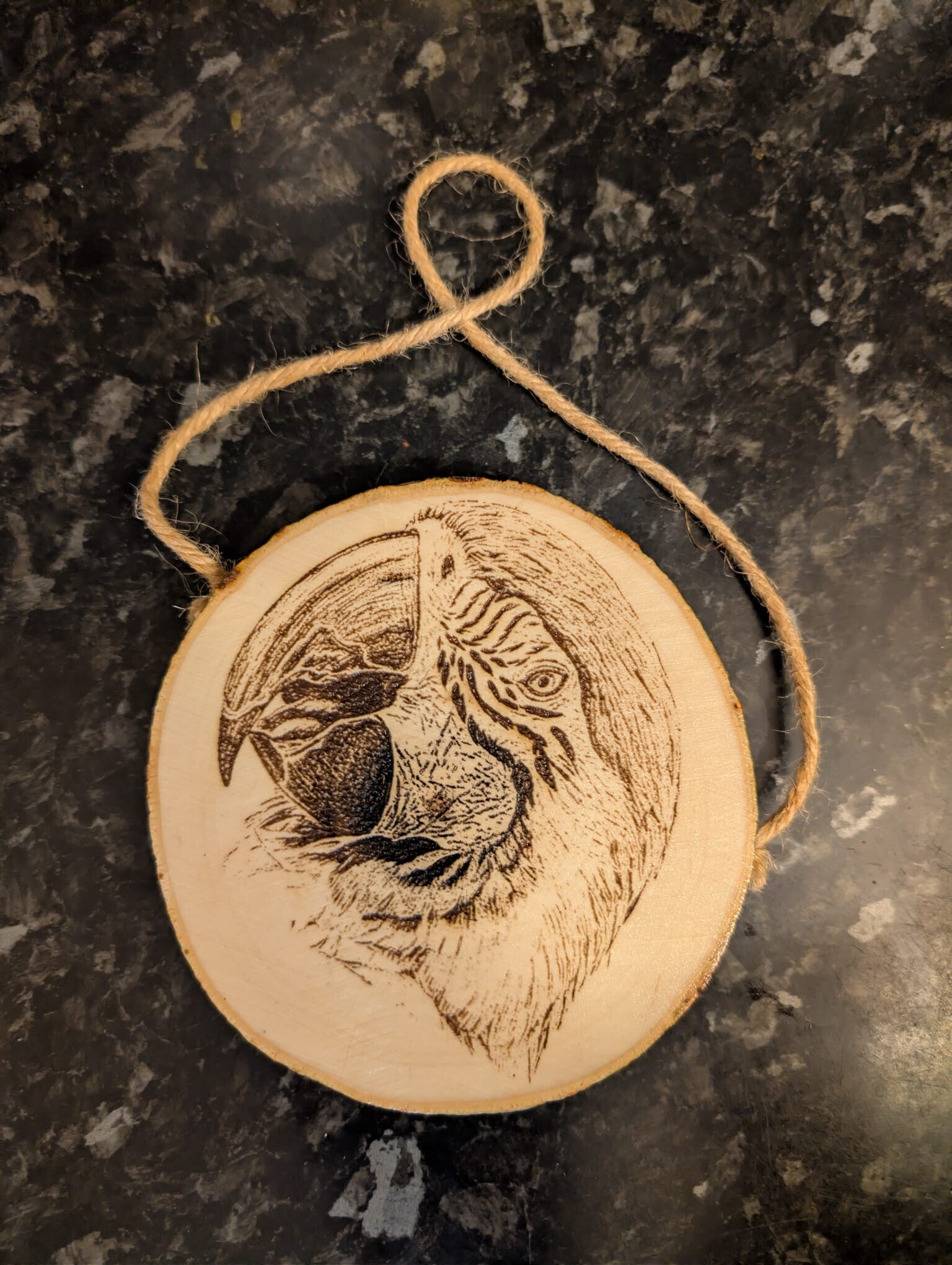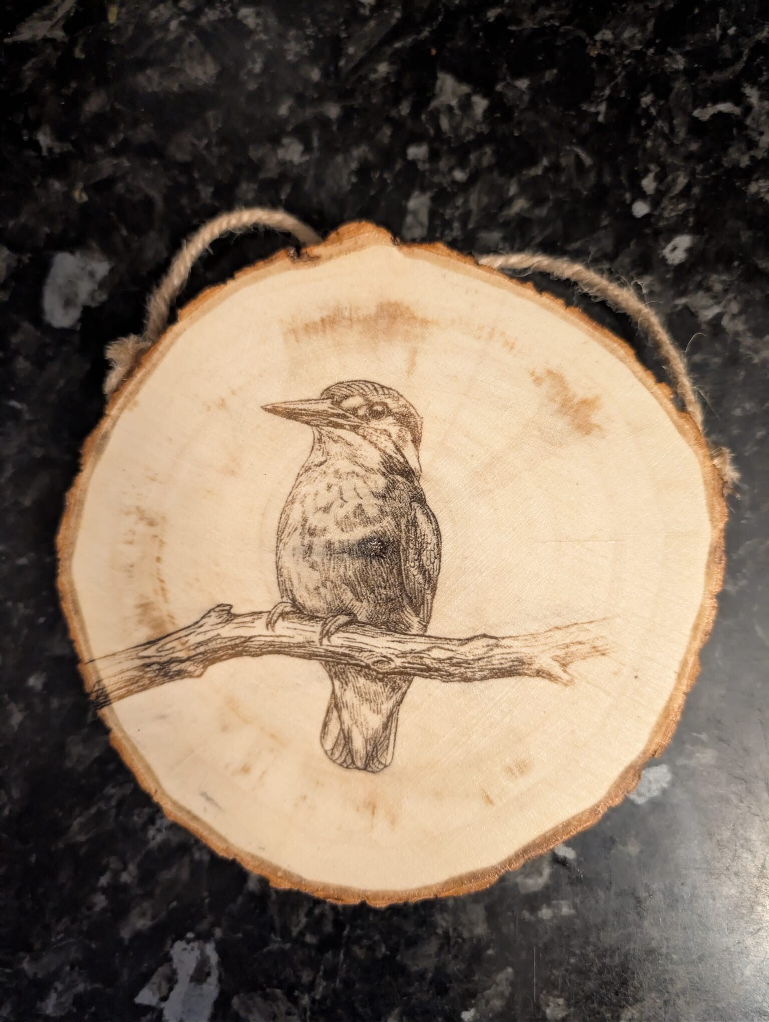 Various engraved pictures on small/medium round wood.